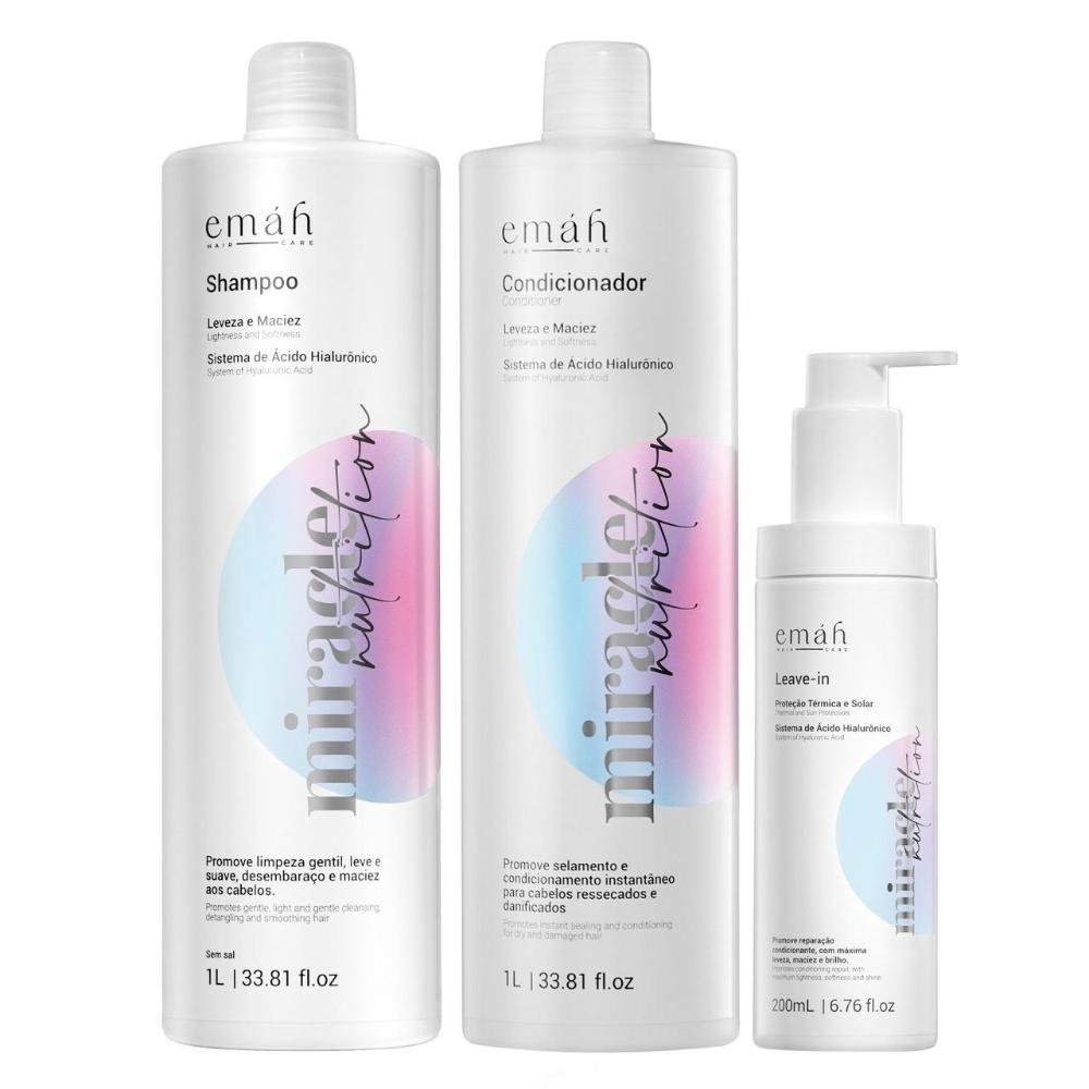Emáh Miracle Nutrition - Shampoo 1L + Condicionador 1L + Leave in 200ml ÚNICO