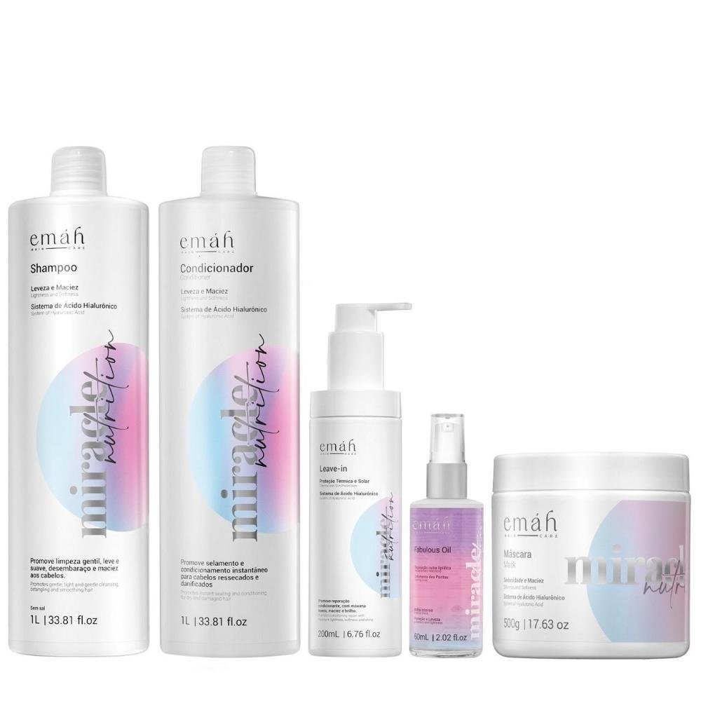 Emáh Miracle Nutrition - Shampoo 1L + Condicionador 1L + Máscara 500g + Leave in 200ml + Óleo 60ml