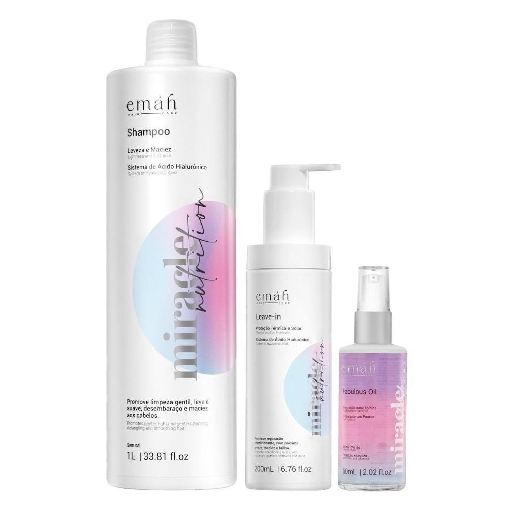 Emáh Miracle Nutrition - Shampoo 1L + Leave in 200ml + Óleo 60ml ÚNICO