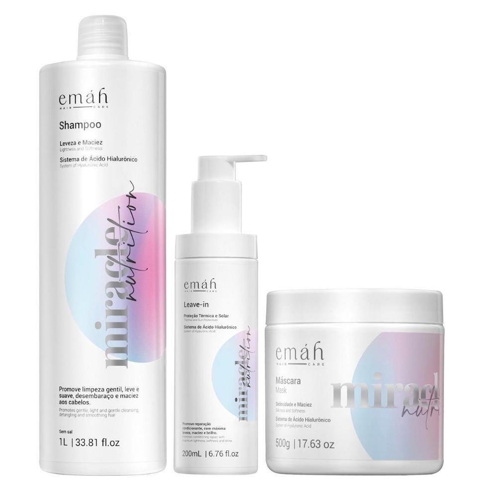Emáh Miracle Nutrition - Shampoo 1L + Máscara 500g + Leave in 200ml ÚNICO