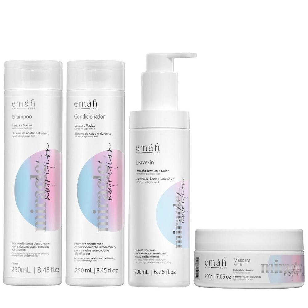 Emáh Miracle Nutrition - Shampoo 250ml + Condicionador 250ml + Máscara 200ml + Leave in 200ml