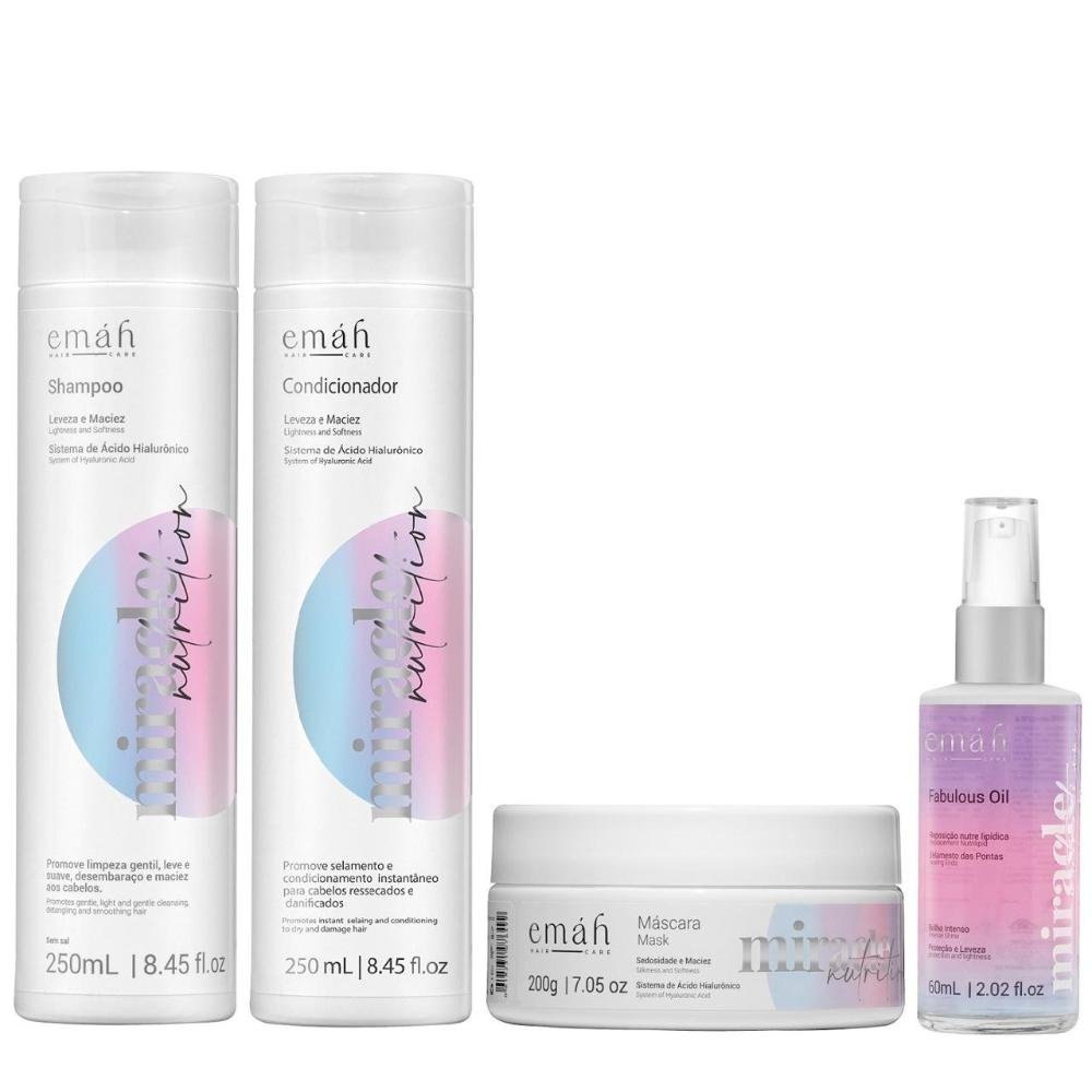 Emáh Miracle Nutrition - Shampoo 250ml + Condicionador 250ml + Máscara 200ml + Óleo 60ml ÚNICO