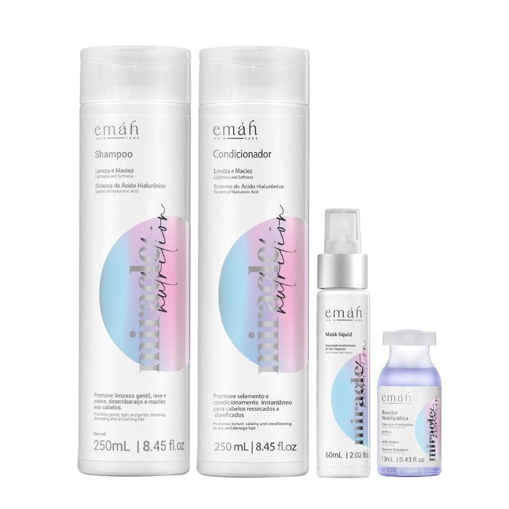 Kit Tratamento Potencializado Emáh Miracle Nutrition: Shampoo 250ml + Condicionador 250ml + Máscara Líquida 60ml + Ampola Booster 13ml