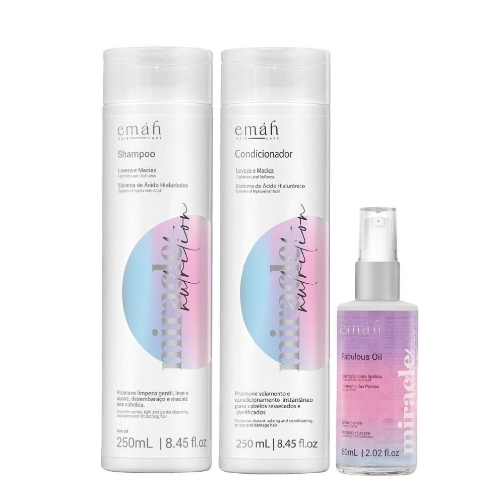 Emáh Miracle Nutrition - Shampoo 250ml + Condicionador 250ml + Óleo 60ml