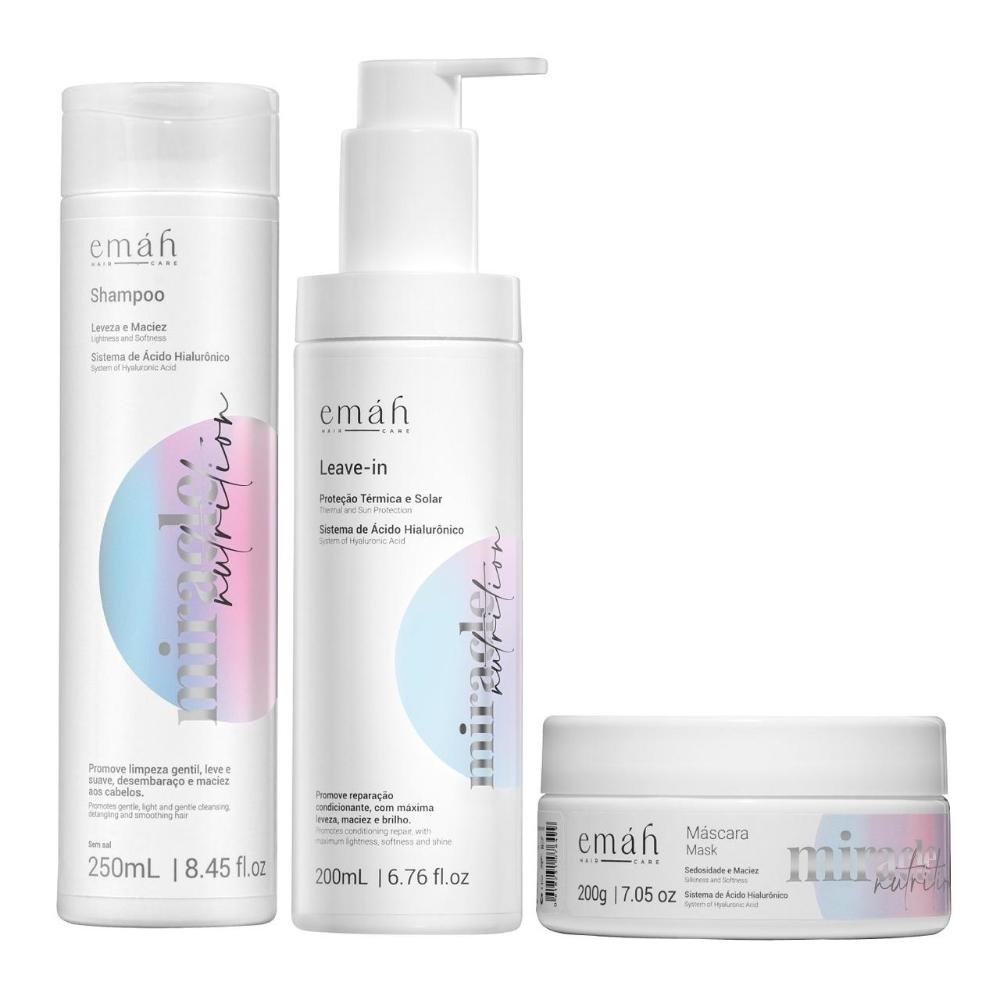 Emáh Miracle Nutrition - Shampoo 250ml + Máscara 200g + Leave in 200ml ÚNICO