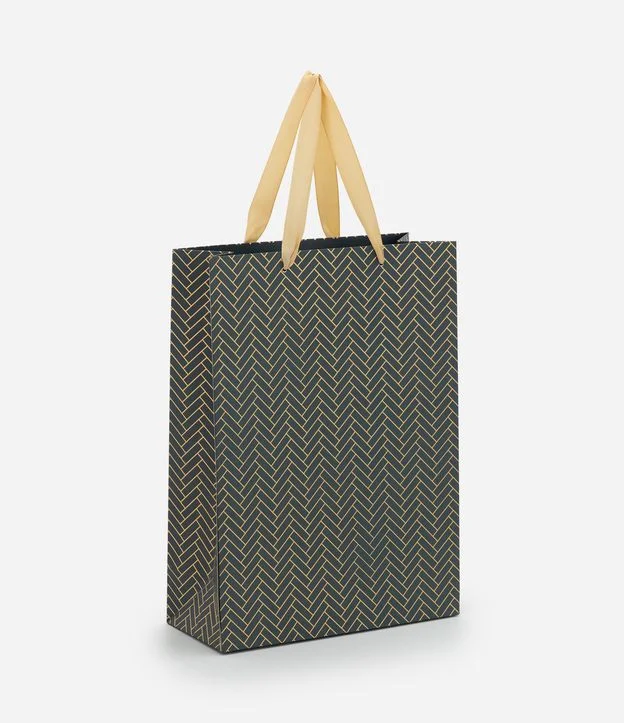 Embalagem de presente confeccionada com papel e papelão mais sustentável. Possui tamanho pequeno, alças duplas contrastantes e estampa geométrica. Acompanha cartõezinhos, diferencial que valoriza a apresentação do presente.