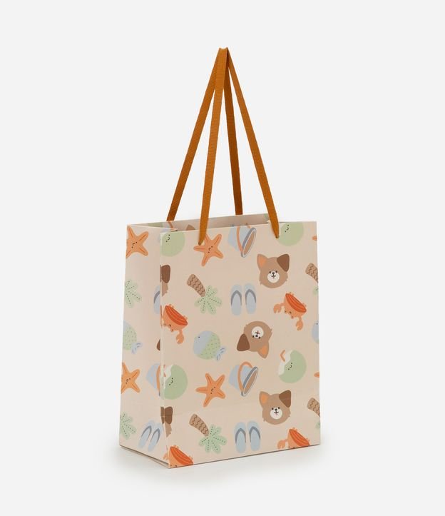 Embalagem de Presente Pequena com Estampa Urso e Praia Bege