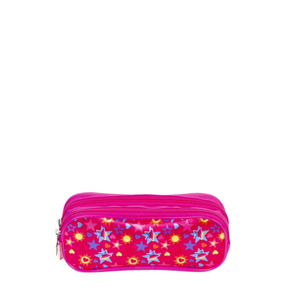 Com uma estampa alegre, colorida e cheia de movimento, este estojo de dois compartimentos é o item que faltava na coleção Pink! Os puxadores do zíper tem formato de estrela, todo em rosa pink. *Produto SESTINI certificado pelo INMETRO Registro: 003403/2018 - OCP - : 0061