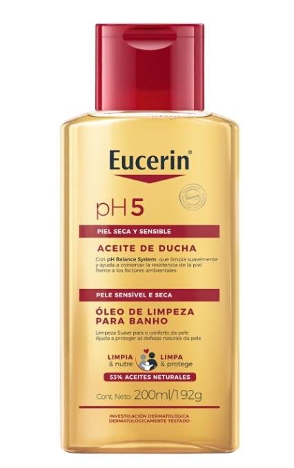 Eucerin pH5 Óleo de Banho limpa e protege a barreira cutânea, respeitando o pH da pele e deixando-a macia e suave.