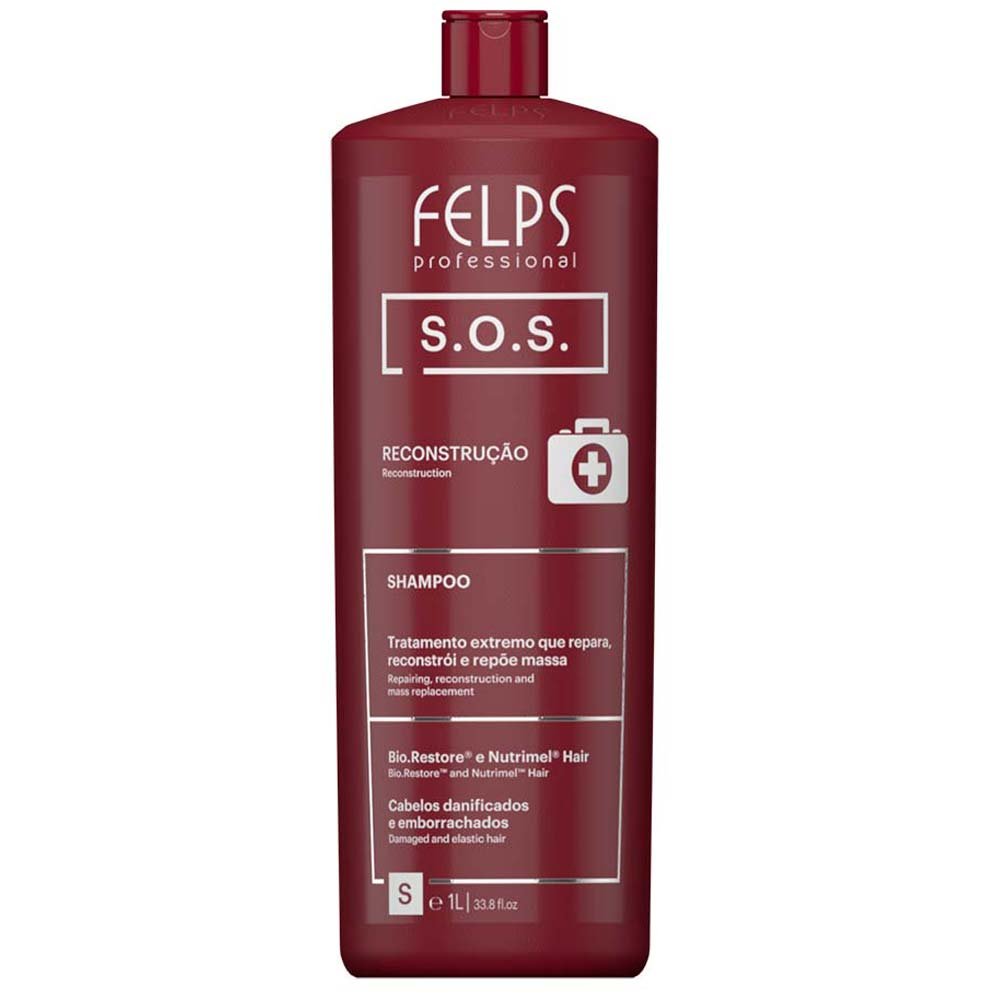 Shampoo para cuidados diários de cabelos danificados. Felps Profissional S.O.S. limpa com delicadeza e garante reparação imediata, além de reconstruir e proporcionar mais força até mesmo aos fios que sofreram com processos químicos extremamente agressivos.