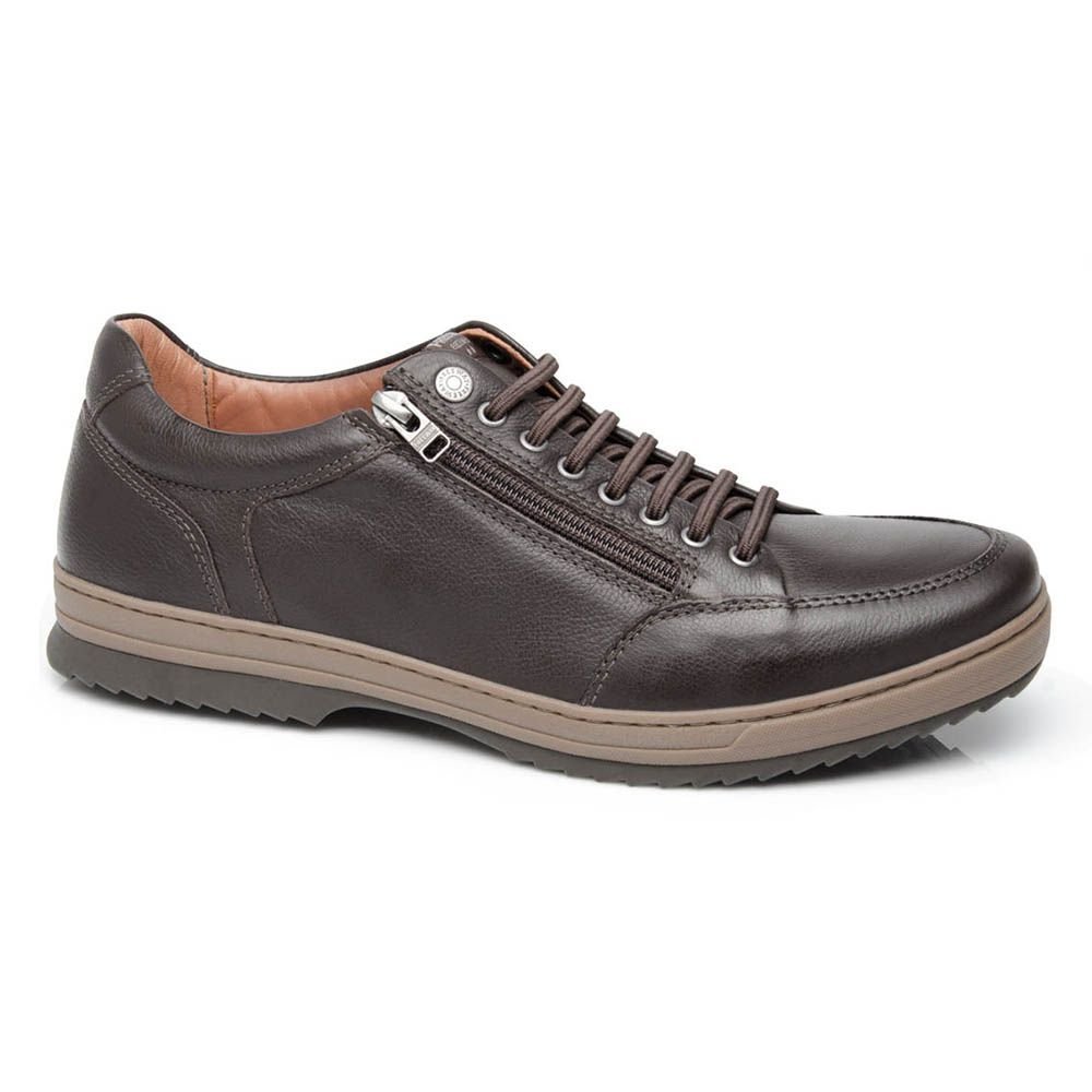Sapatênis masculino modelo Hallf, 100% couro. Exterior e interior forrado em couro. Conta com amarração por atacadores elásticos e fechamento também em zíper, garantindo o máximo em conforto e praticidade. Solado em borracha bicolor e palmilha em espuma de PU supermacia, de alta durabilidade.