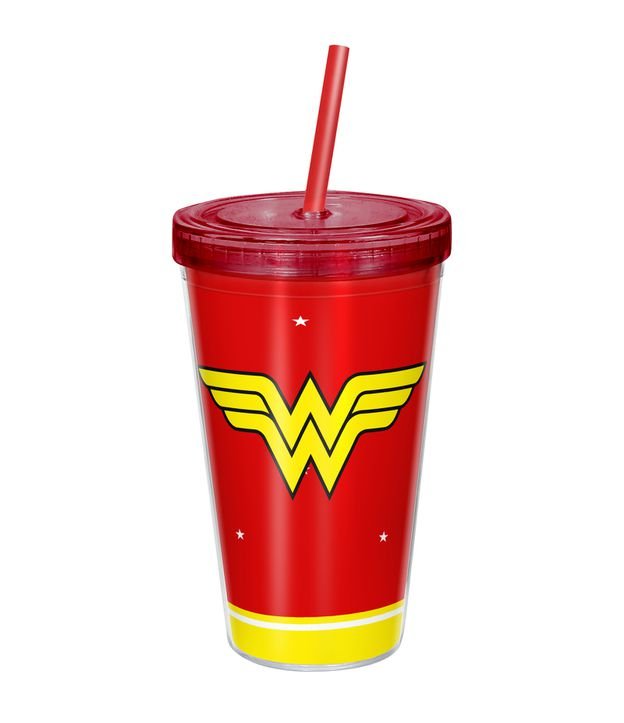 • GANHE  Copo Canudo Copo 450ML DC MULHER MARAVILHA U 1