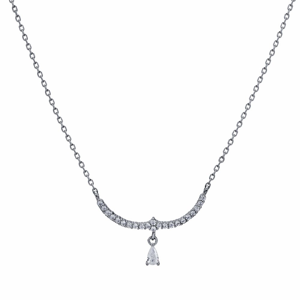 Gargantilha Prata Rodinada Com Pingente Curvado Gota De Zircônia No Meio