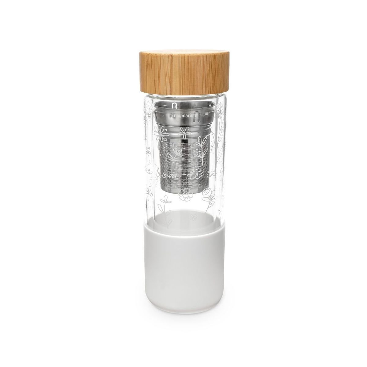 Toda em vidro e trazendo detalhes em plástico, metal e bambu, ela conta com um design delicado, sendo ideal para você desfrutar suas bebidas favoritas e ainda transformar suas pausas para hidratação em verdadeiros rituais de autocuidado.