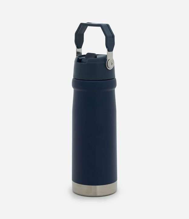 Garrafa Térmica em Metal com Alça e Canudo 900ml Azul Escuro