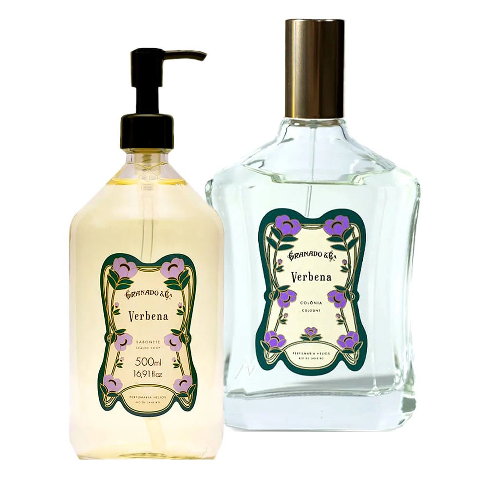 O Granado Verbena Kit combina dois produtos essenciais: uma colônia unissex de 100ml e um sabonete líquido da linha Vintage. A colônia destaca-se por sua fragrância cítrica clássica, onde as notas refrescantes de verbena se juntam à bergamota, ao alecrim e ao musk para criar uma composição olfativa revigorante. Formulada com álcool extra neutro, ela passa pelo processo de maceração que intensifica suas notas olfativas, garantindo maior durabilidade na pele. O sabonete líquido complementa esta experiência com sua base vegetal suave que limpa delicadamente enquanto hidrata a pele.