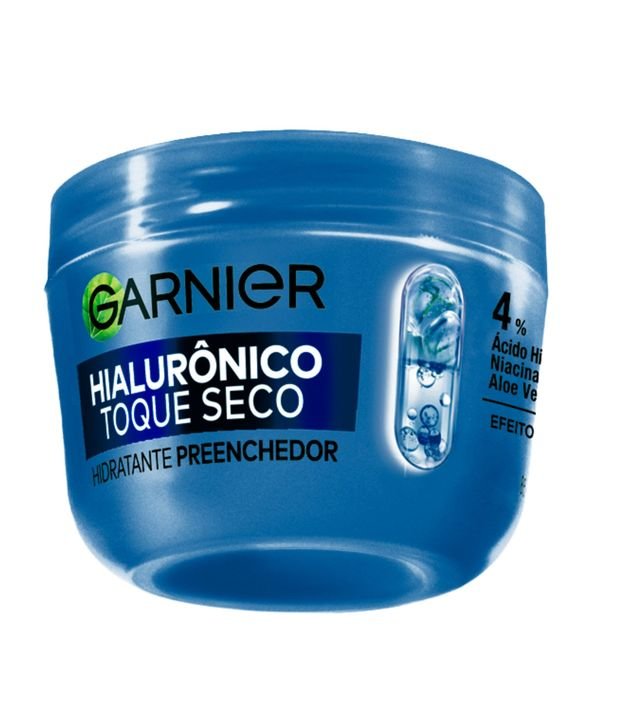 Garnier Hidratante Hialurônico Toque Seco é um hidratante facial numa textura revolucionária para peles mistas e oleosas. Hidrata e reduz a oleosidade com 8h de toque seco. Com Ácido Hialurônico, Niacinamida e Aloe vera, o novo Hidratante Toque Seco Preenchedor uniformiza a pele, controla a oleosidade, tem efeito preenchedor, além de hidratar sem pesar. Com resultados comprovados pelas consumidoras, onde 91% sentiram uma sensação refrescante ao aplicar, 91% sentiram a aparência da pele ficar melhor, 91% notaram uma pele mais uniforme e 82% sentiram redução visivelmente da aparência de poros, o Hidratante Toque Seco Hialurônico possui uma textura que não é gel, não é creme, não pesa, só experimentando para sentir! Pode ser usado diariamente na sua rotina de skincare e em todos os tipos de pele, em especial as peles mistas e oleosas.