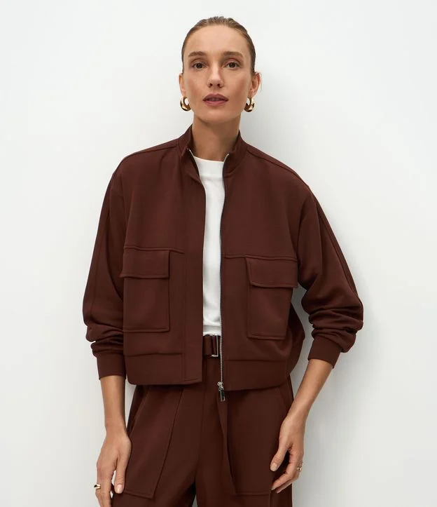 Jaqueta Alongada em Moletom sem Felpa Marrom
