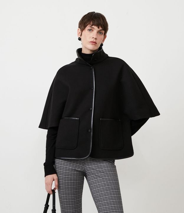Jaqueta Alongada em Polivelour com Detalhe Contrastante e Gola Padre