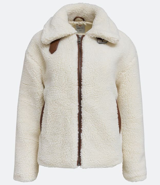 Jaqueta Alongada Peluciada com Detalhes em Material Sintético