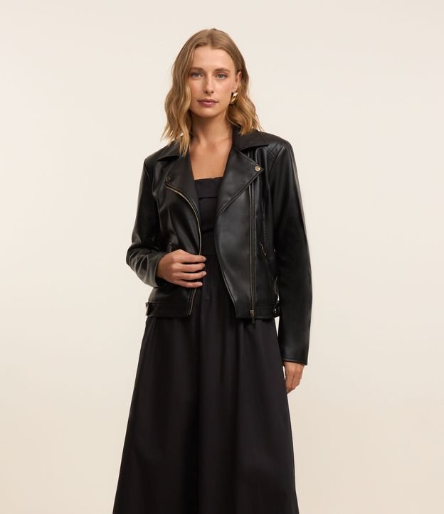 Jaqueta Biker em PU com Ponto Roma na Manga