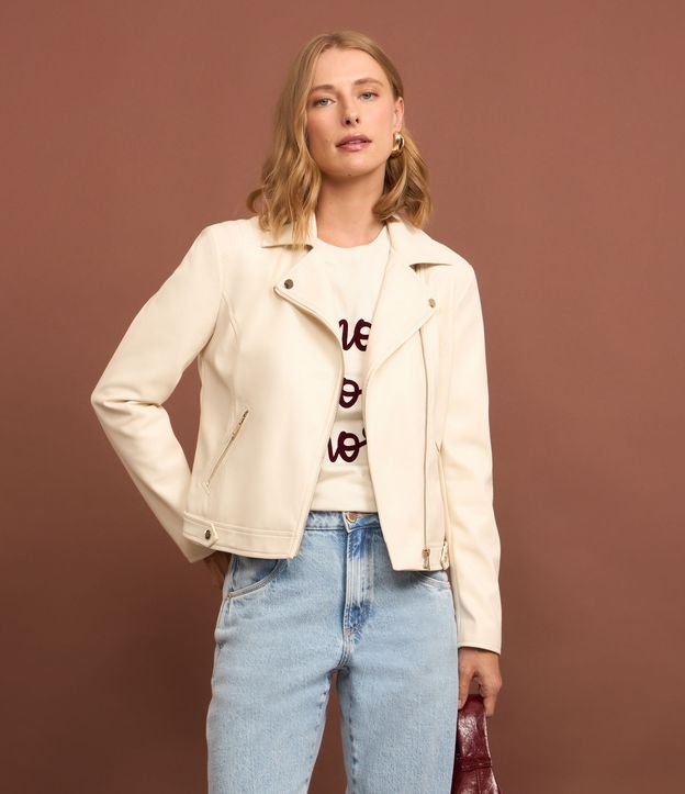 Jaqueta Biker em PU com Ponto Roma na Manga Branco