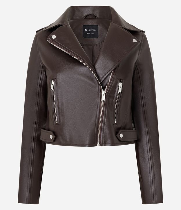 Jaqueta Biker em Pu com Zíper nos Bolsos Marrom