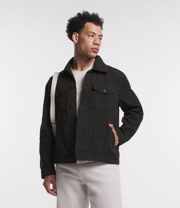 Jaqueta Boxy em Sarja com Bolsos Frontais e Recortes