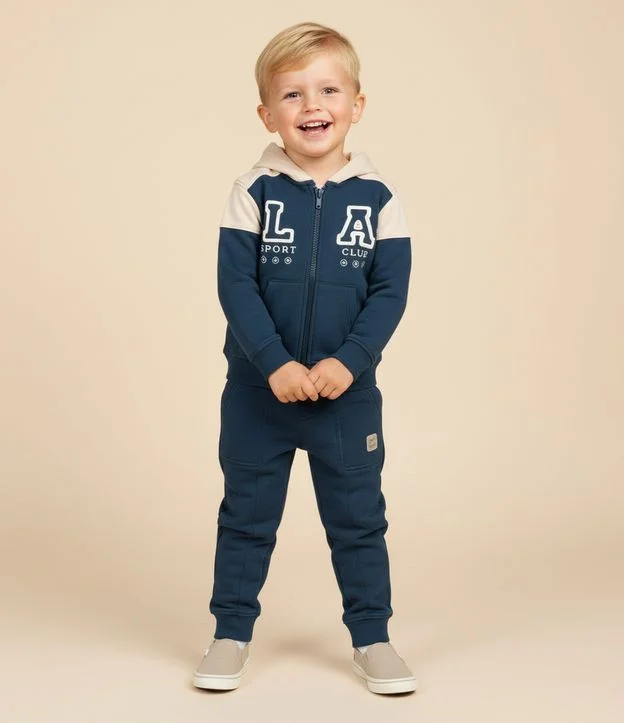 • Jaqueta College Infantil em Moletom com Capuz - Tam 1 a 5 anos Azul 1