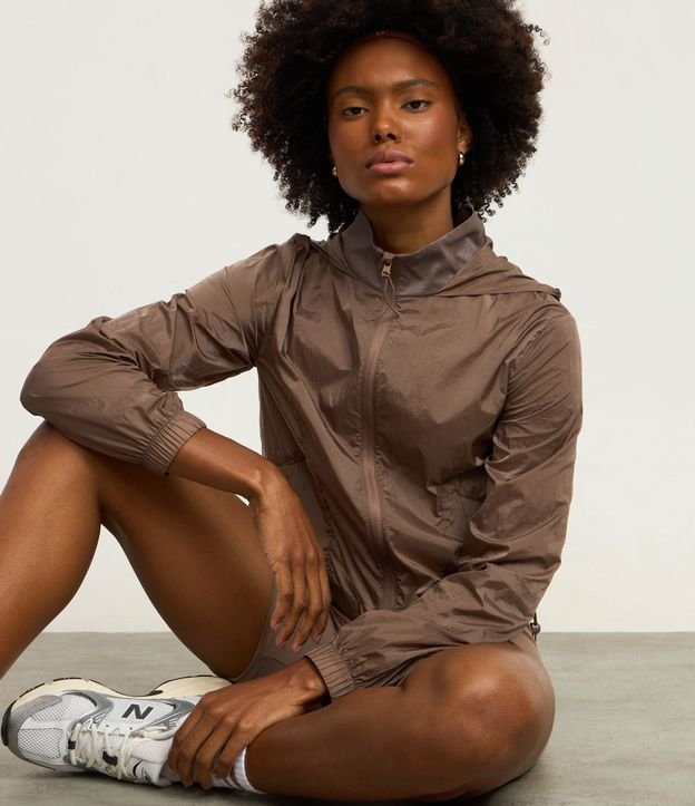 Jaqueta Corta Vento com Saquinho para Guardar Marrom