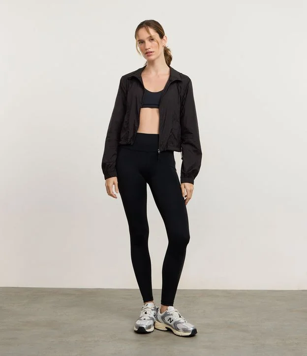 Jaqueta Corta Vento Cropped Esportiva com Saquinho Preto