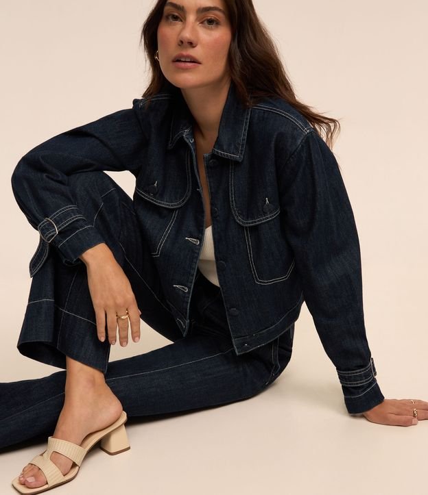 Jaqueta Cropped em Jeans com Costura Aparente