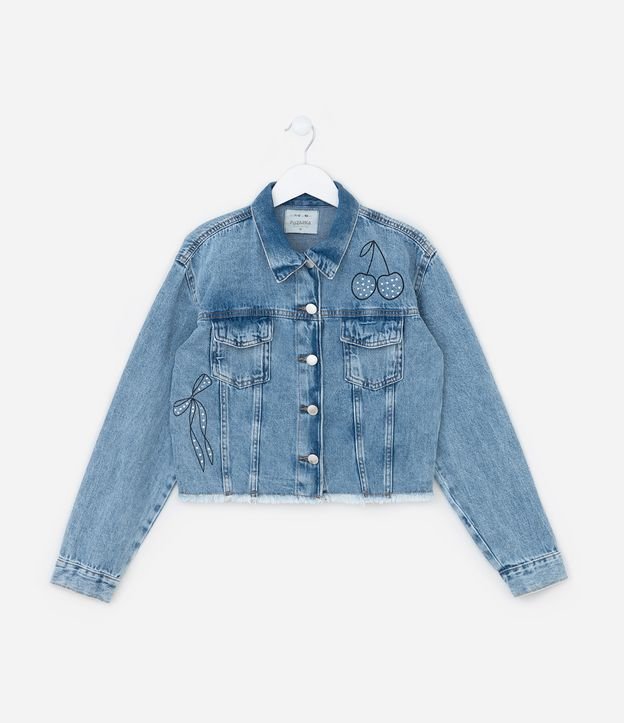 Jaqueta Curta Infantil em Jean com Brilhos Aplicados - Tam 5 a 14 Anos