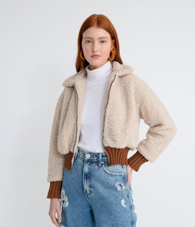 Jaqueta Curta Peludinha com Ribana nos Punhos e Barra