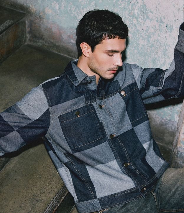 Jaqueta confeccionada em jacquard de algodão certificado BCI e boas práticas ambientais, com efeito patchwork quadriculado que valoriza a construção da peça. Possui gola colarinho, mangas longas, bolsos frontais e fechamento por botões metálicos. Ideal para compor visuais modernos com estética artesanal e urbana.