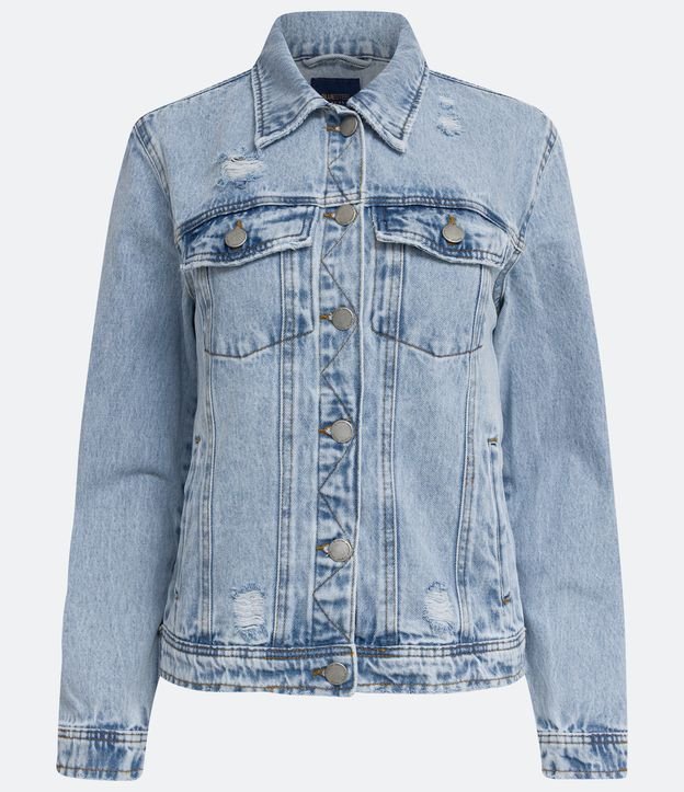 Jaqueta em Jeans com Recortes e Rasgos e Puídos