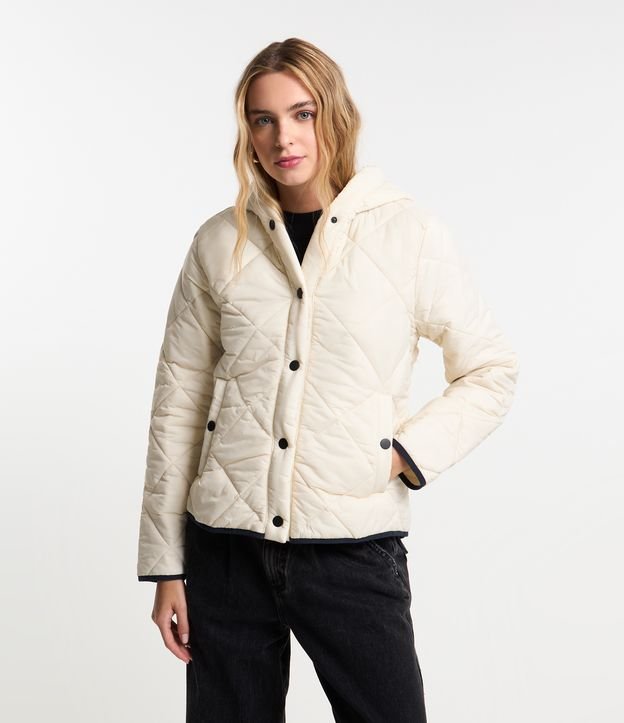 Jaqueta em Microfibra Matelassê com Contraste na Barra Off White