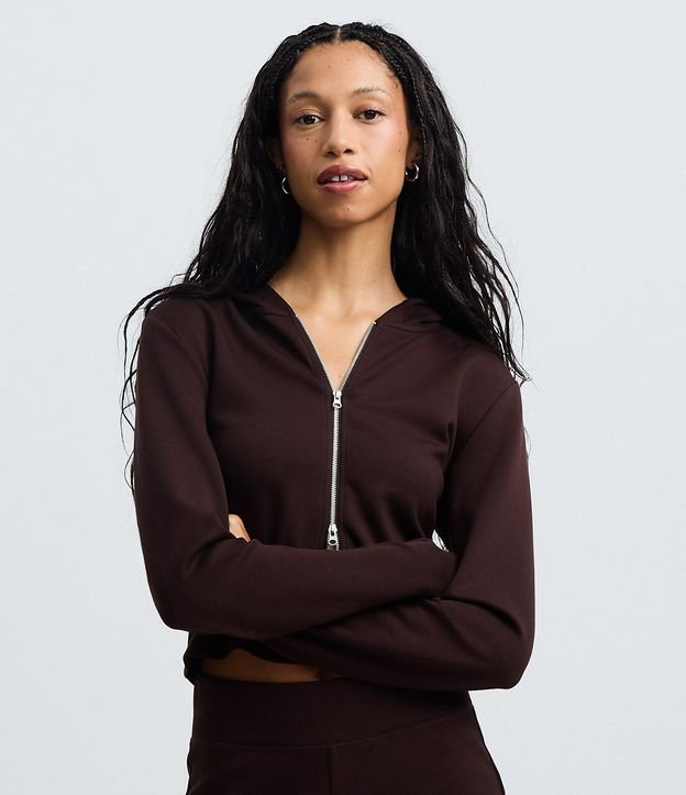 Jaqueta em Modal com Capuz e Fechamento em Zíper Marrom
