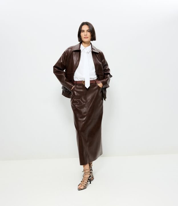 Jaqueta em PU com Bolsos Fole e Fechamento em Zíper Marrom
