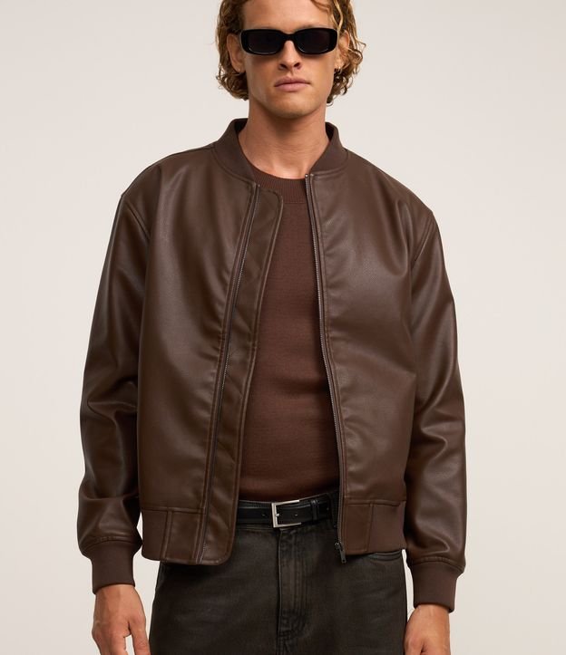 Jaqueta em Pu com Zíper Frontal e Gola Alta