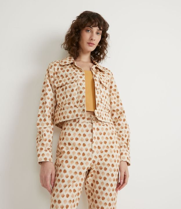 Jaqueta em Sarja com Estampa Poá e Bolsos