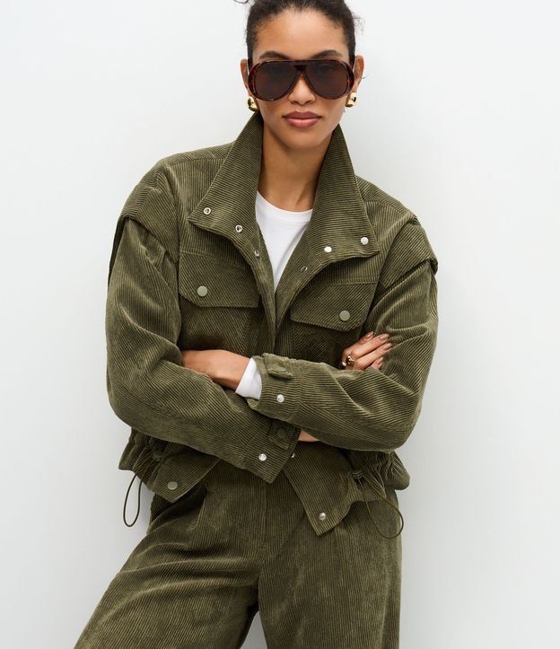 Jaqueta em Veludo Cotelê com Cava Deslocada e Puxadores Verde