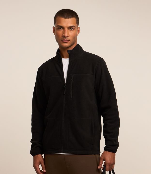 Jaqueta Esportiva com Fechamento em Zíper e Bolsos Preto