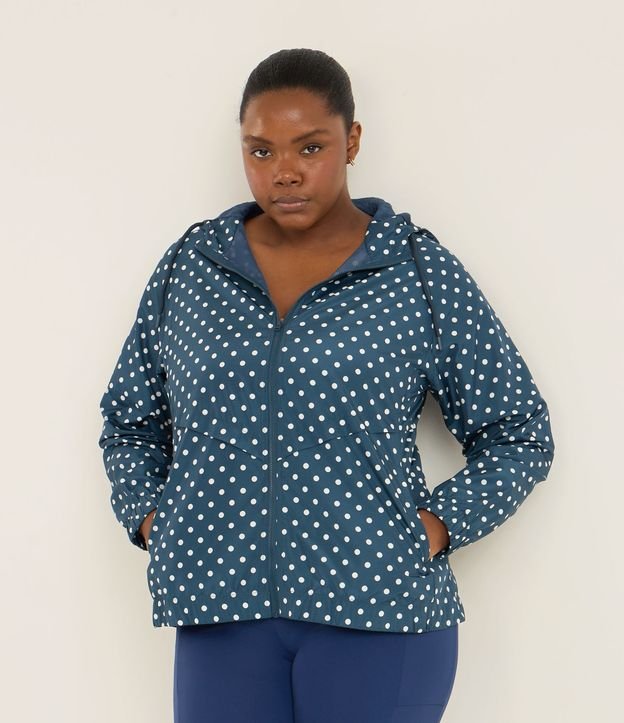 Jaqueta Esportiva Corta Vento com Capuz Estampa Poá Azul