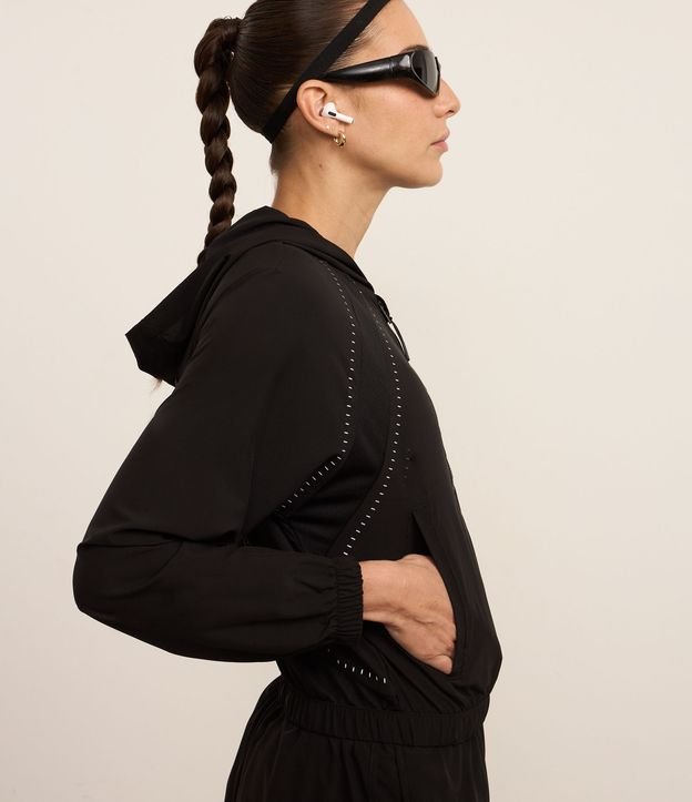 Jaqueta Esportiva Cropped com Detalhe Refletivo Preto