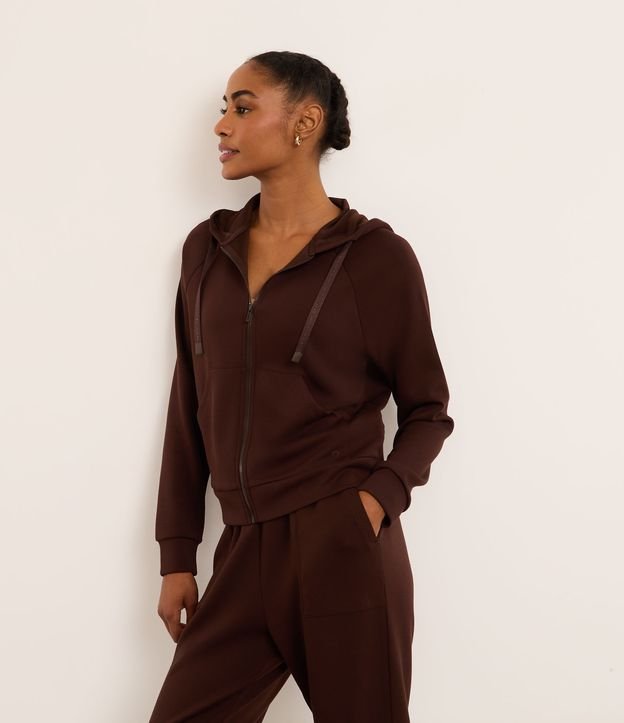 Jaqueta Esportiva em Modal com Capuz Marrom