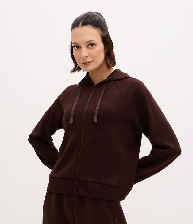 Jaqueta Esportiva em Modal com Capuz Marrom