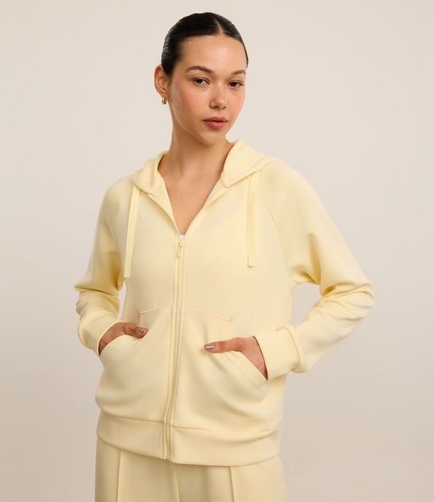 Jaqueta Esportiva em Modal com Capuz Amarelo Manteiga