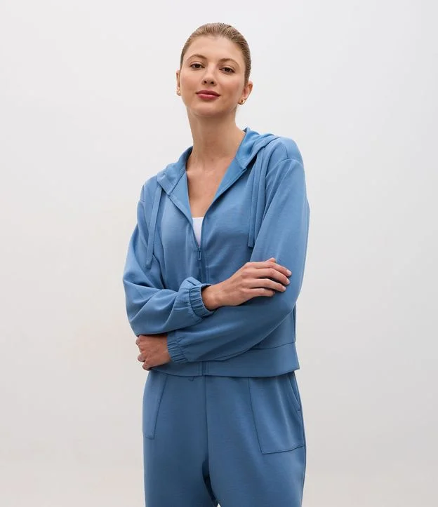 Jaqueta Esportiva Regular em Modal com Capuz Azul