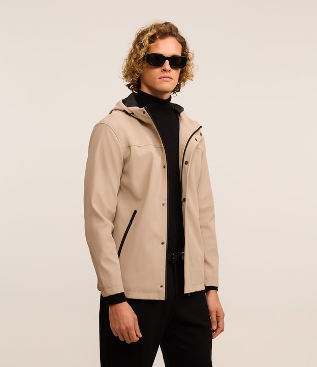 Jaqueta Impermeável com Capuz e Bolsos com Zíper Bege